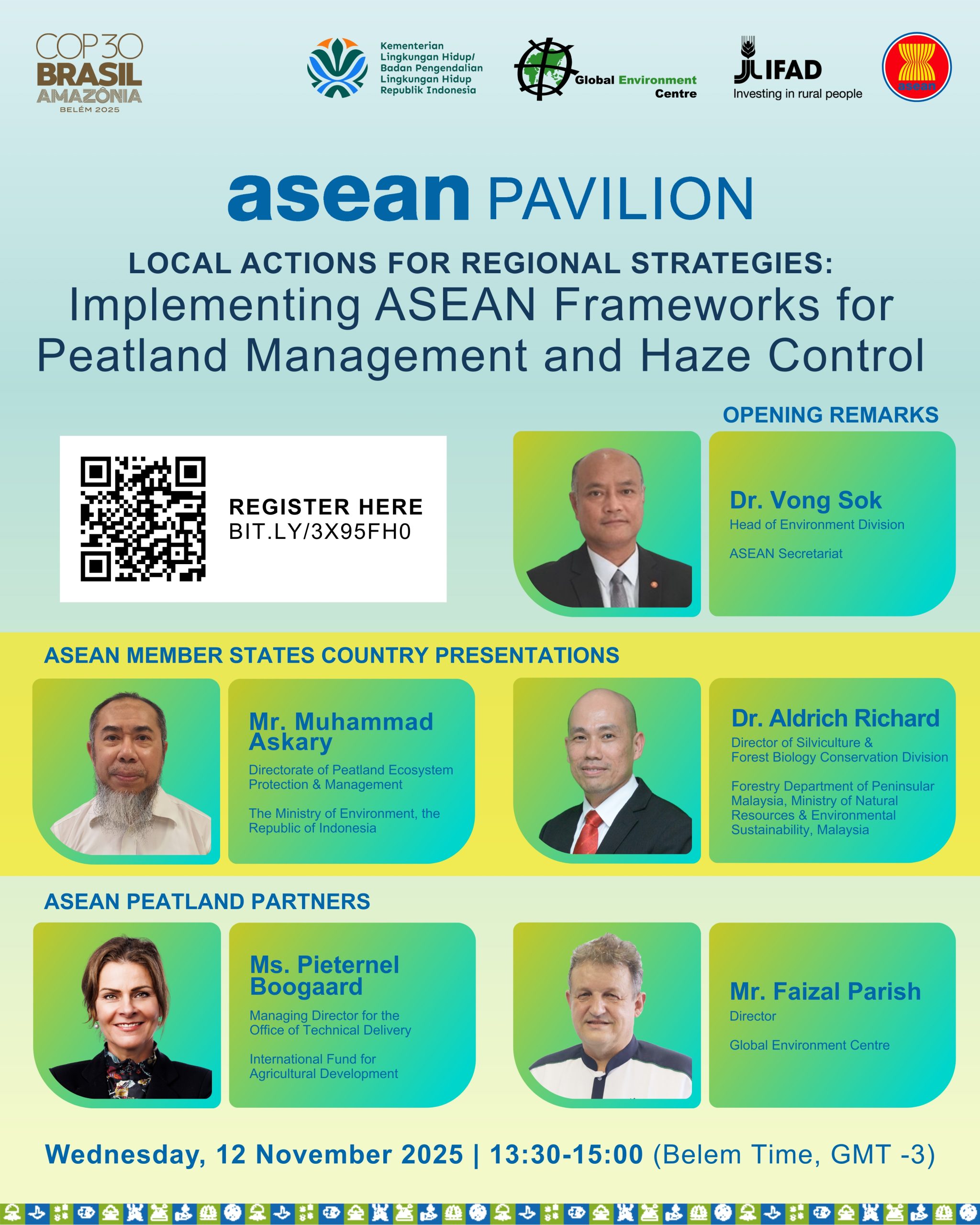 The ASEAN Member States (AMS) will present on local and national initiatives and actions taken contributing to ASEAN Peatland Management Strategy (APMS) implementation, including development and implementation of respective National Action Plan for Peatlands and other relevant peatland related management plans and strategic collaborations with private sector and communities.