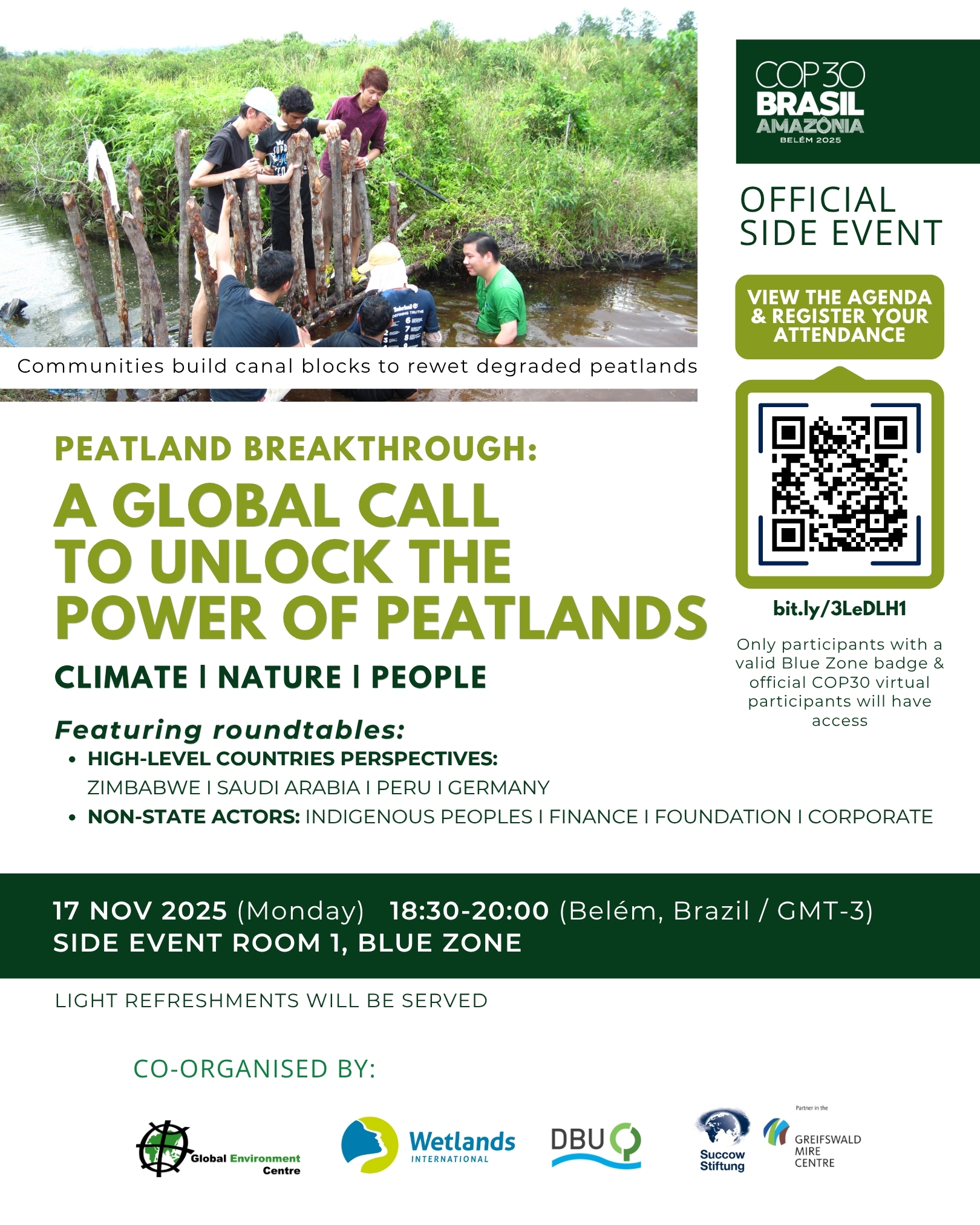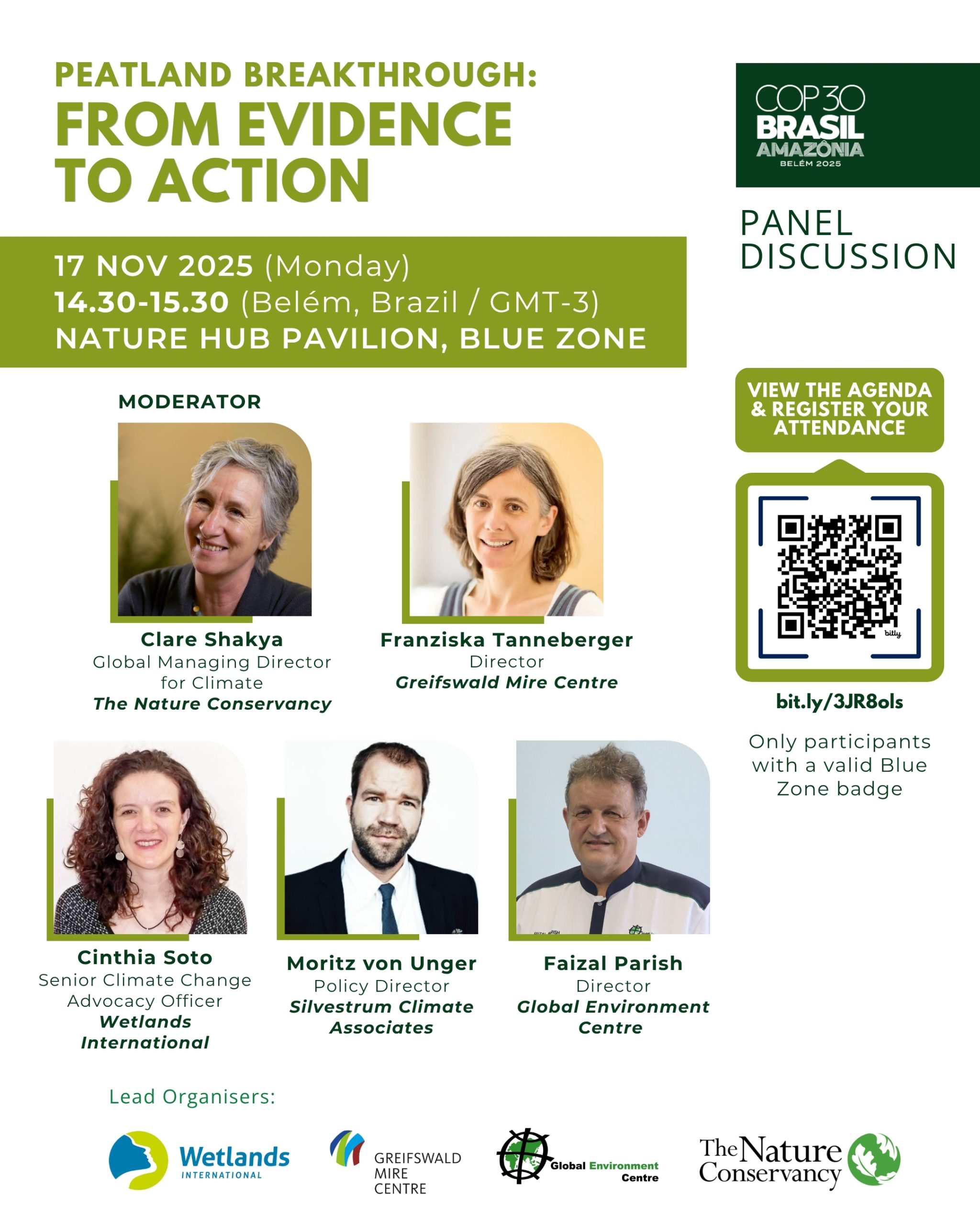 This session will explore how the Peatland Breakthrough is catalysing global action, uniting countries, communities and companies to restore and protect the world’s most carbon-dense ecosystems.