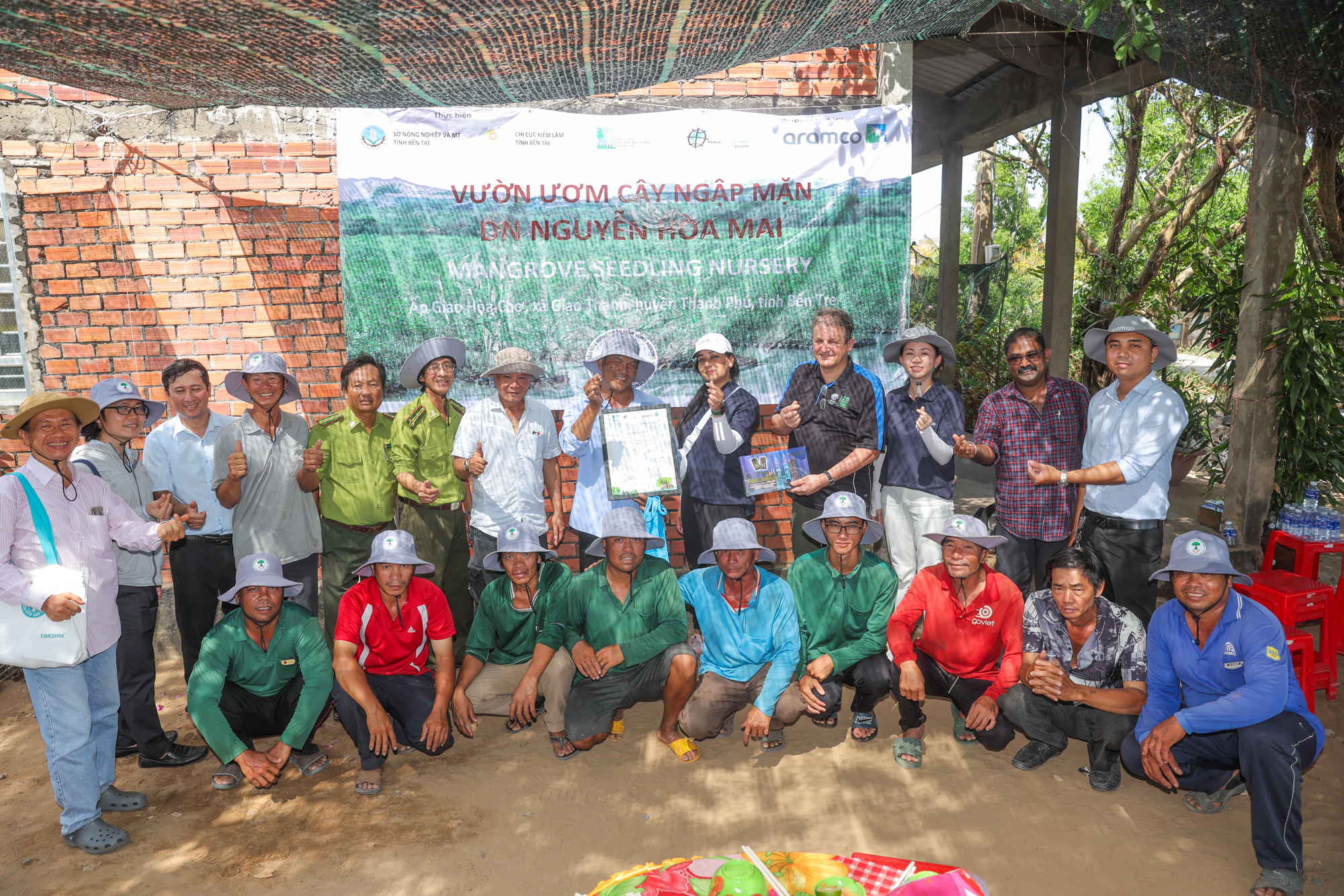 Delegates from Aramco, GEC, local communities and local government visited the community-managed nursery in Giao Thanh commune, Ben Tre Province.