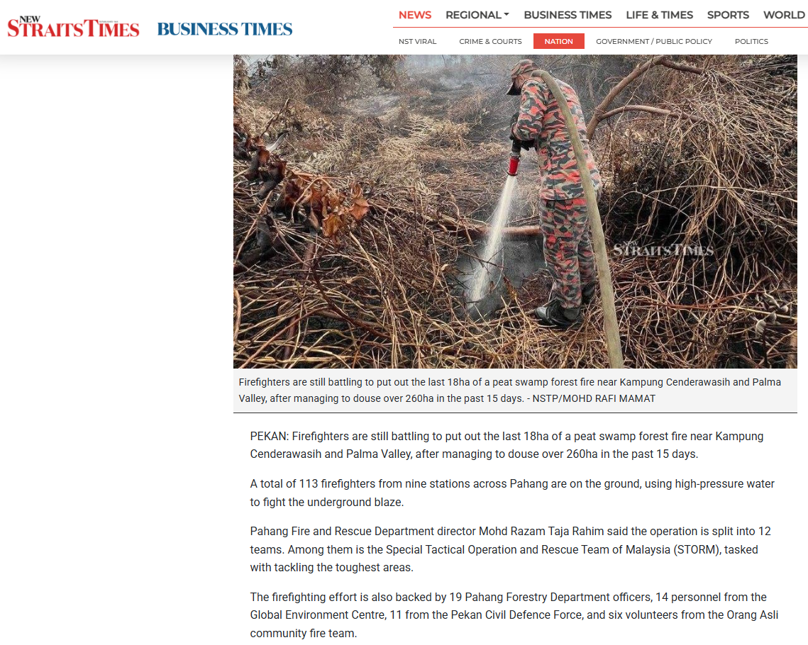 Firefighters battle remaining blaze after dousing 260ha peat fire in Pahang