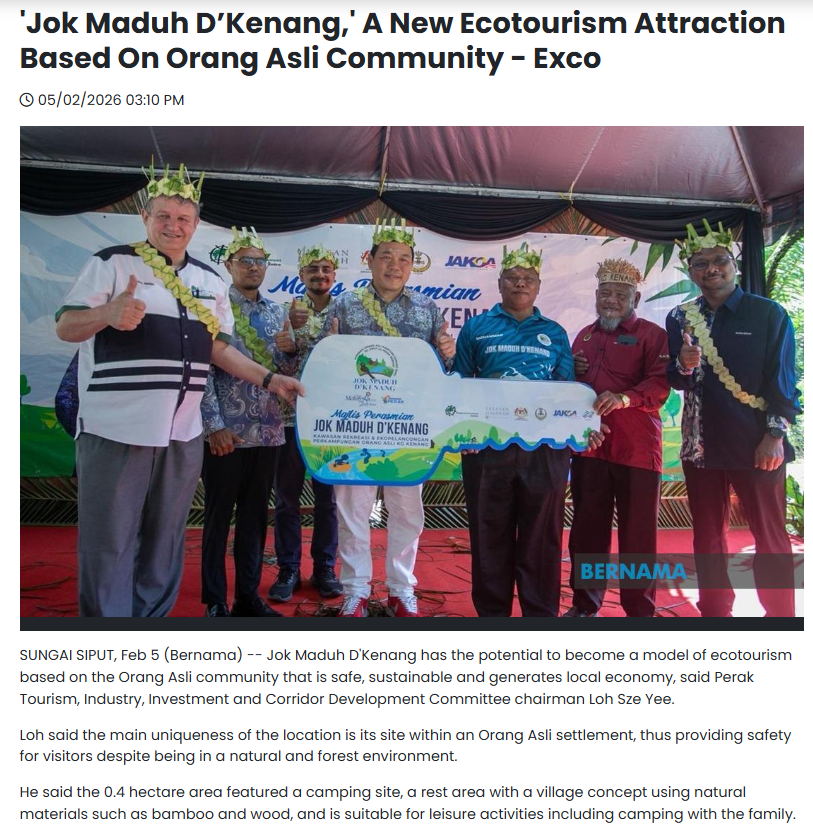Jok Maduh D’Kenang, a new ecotourism attraction based on Orang Asli community
