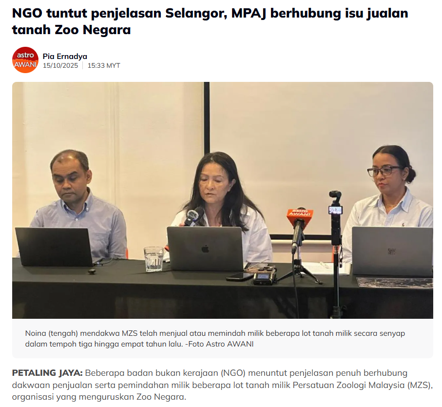 Environmental groups urge Selangor govt to explain Zoo Negara’s land use change and sale Read More » October 17, 2025