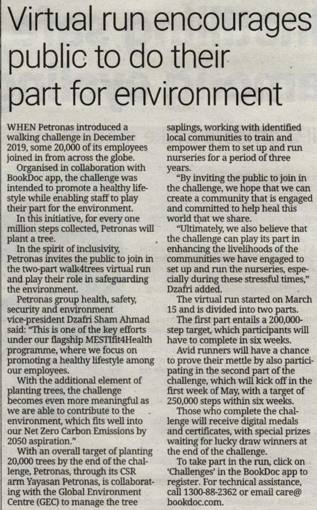 With an overall target of planting 20,000 trees by the end of the challenge, Petronas, through its CSR arm Yayasan Petronas, is collaborating with the Global Environment Centre (GEC) to manage the tree saplings, working with identified local communities to train and empower them to set up and run nurseries for a period of three years.